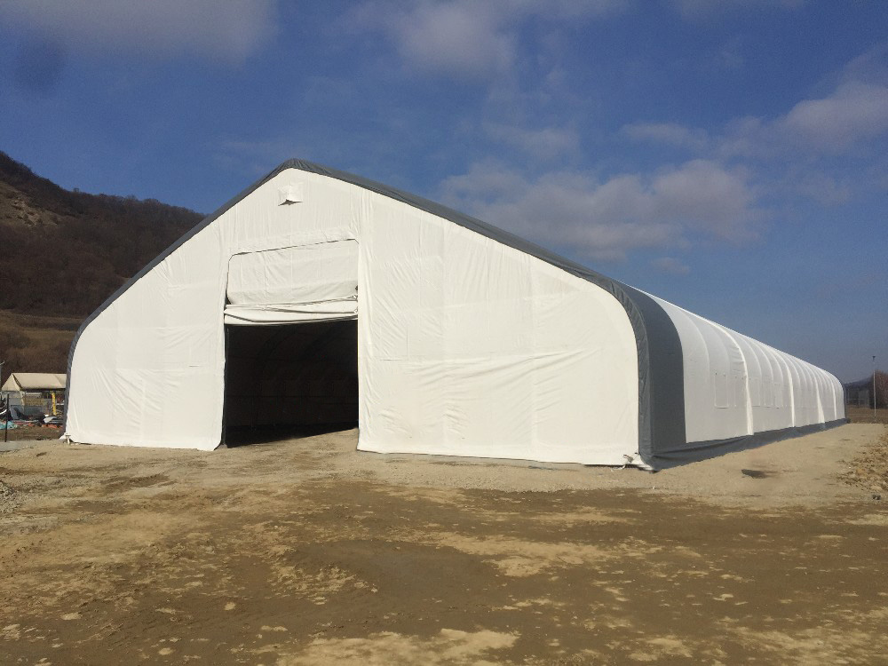 Nagy ellenállóképességű ponyvahangár, amelyet kifejezetten az eltérő, szélsőséges időjárási körülményekhez igazítva fejlesztettünk, mint a nagyobb szél és sűrű hóesés.