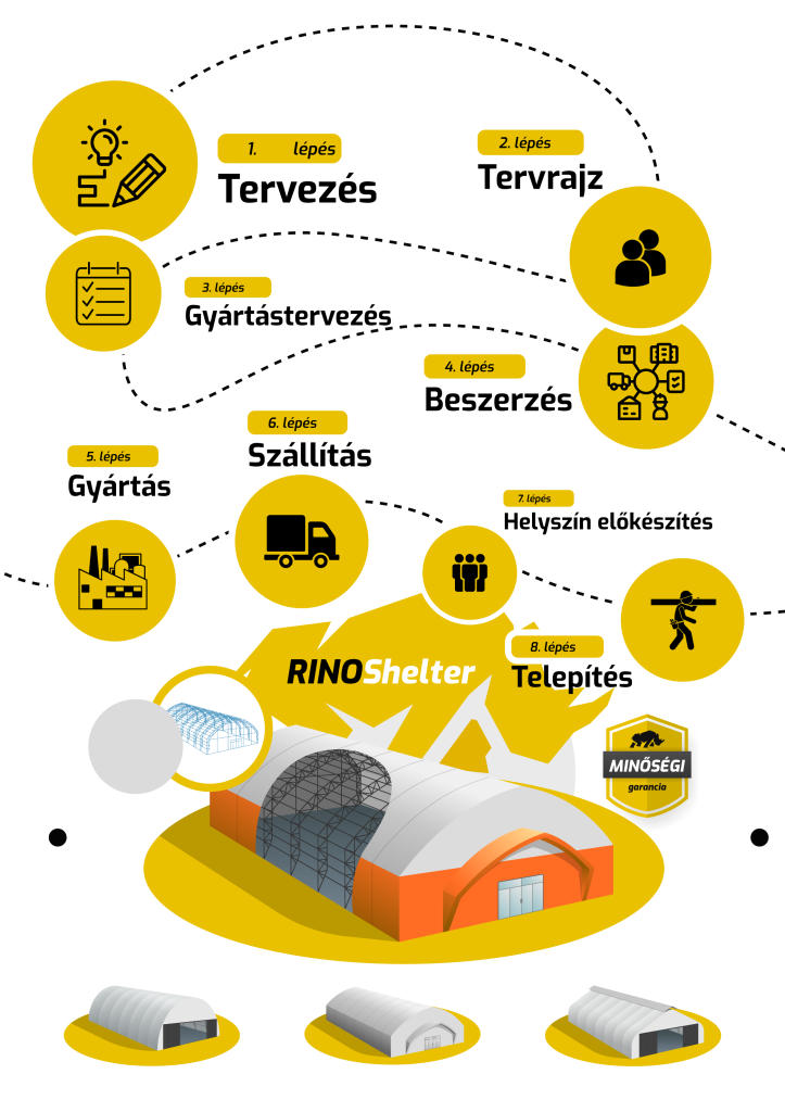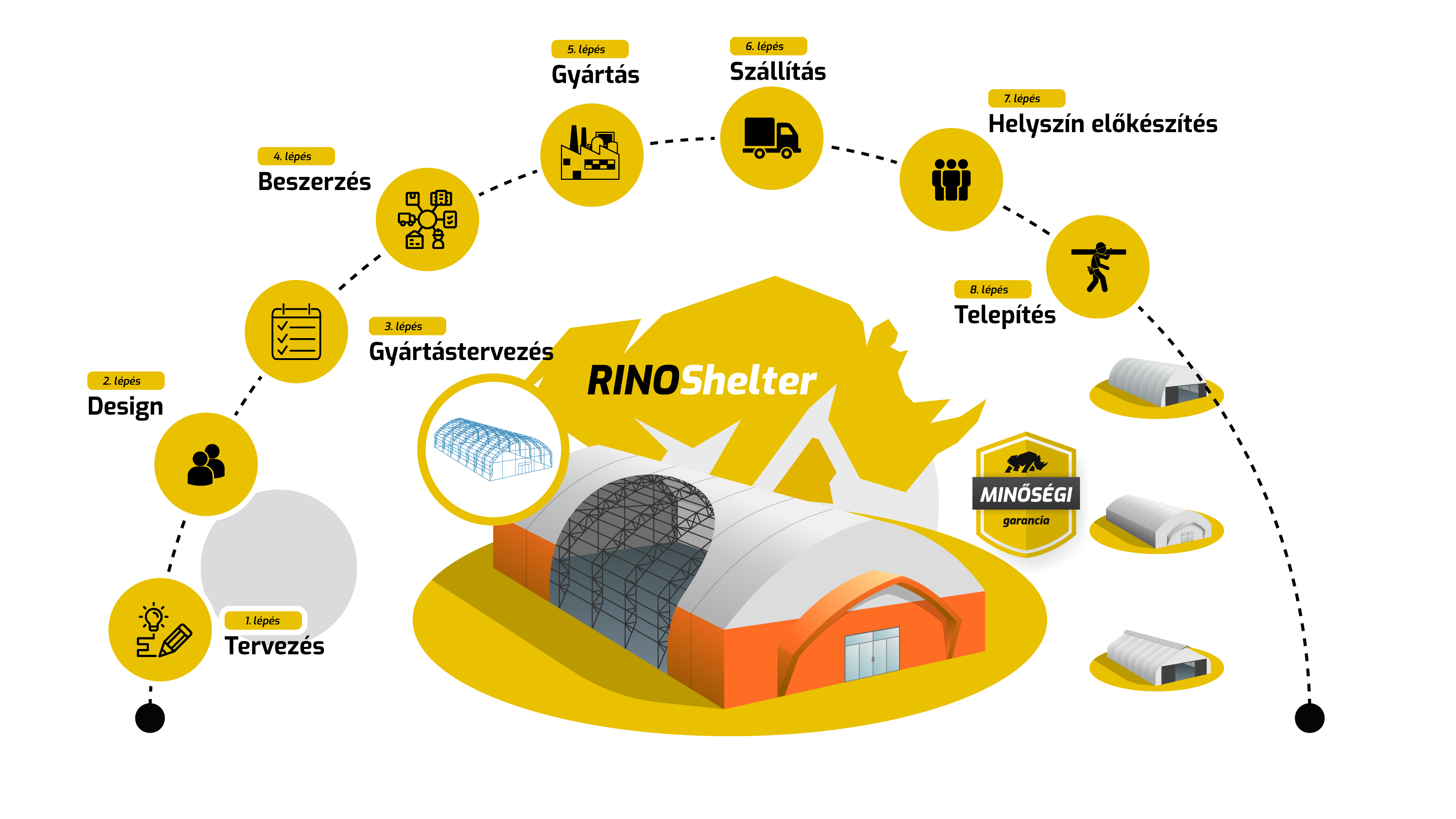 A Rinoshelter ponyvahangárai gyorsan ideiglenes vagy tartós fedett területet biztosítanak egyedi megoldásokkal. Hangáraink szabványos szélességekben és hosszúságokban állnak rendelkezésre, de egyedi méretek is elkészíthetők megrendelőink részére.