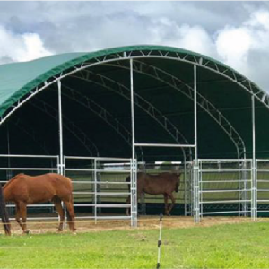 kihasználják a konténerek magasságát, ami csökkenti a termelési költséget,és növeli a hasznos terület kapacitását. A vázszerkezet rendelhető nyitott vagy zárt kivitelben. Az íves kivitelezés mérsékli a erős szél és a hó okozta károkat. Ez a specifikáció széles körben használható mezőgazdasági, állattenyésztési és akár ipari szektorban is.